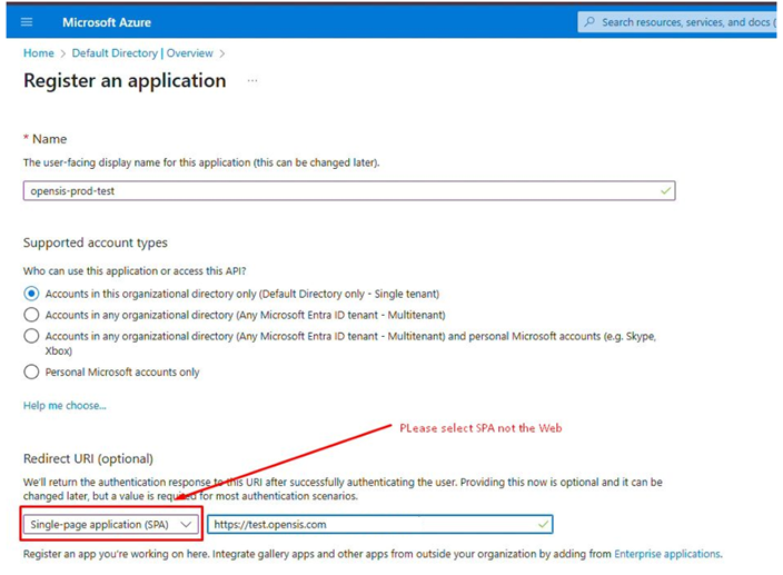 Set the application type as SPA (Single Page Application).