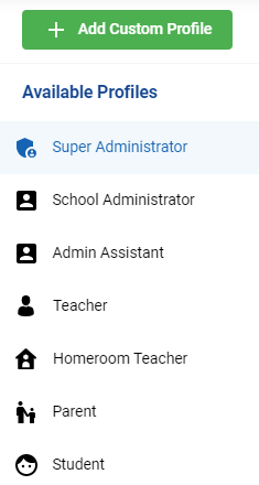 Once this new profile is created, you can assign this profile during Staff, Student, or Parent data entry.